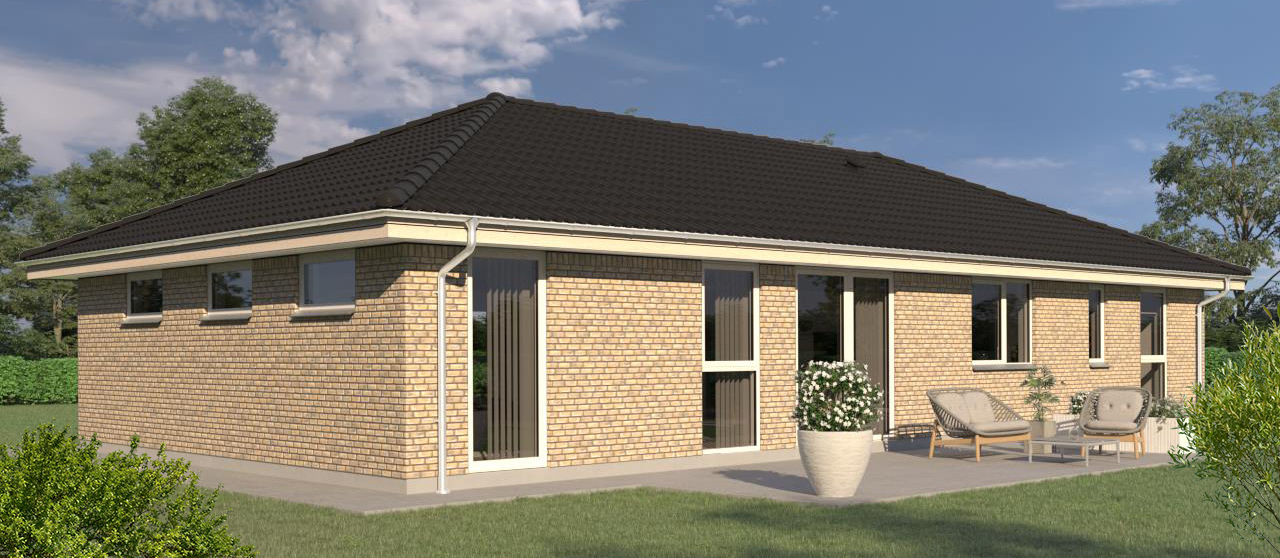 Plantegningen af dette velindrettede længehus på 135 kvm viser fire gode værelser og en gennemtænkt planløsning. Det skønne køkken/alrum imponerer med et skråloft og store vinduespartier, der skaber en lys og luftig atmosfære. Direkte adgang til terrassen binder ude og inde sammen året rundt og skaber en ideel ramme for samvær. Det vinkelformede køkken tilbyder ekstra bord- og skabsplads, og den indbyggede skabsvæg til køleskab/fryser og ovn giver et roligt udtryk. Et praktisk køkkendepot sikrer masser af ekstra opbevaringsplads.